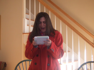 Here she is getting in one last routine before she had to head out early to get things ready for the party. I'm pretty sure she took off the pink boa before hitting the kitchen, but you never know!
